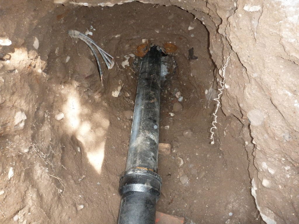 First the ground was excavated with a backhoe before reaching the pipe which was located 9’ below street level.