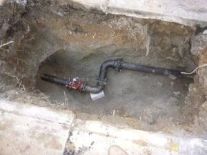 This type of water main also requires a curb valve which is not required on all domestic water mains. The curb valve would be utilized if the Fire Dept. had to turn off the water from the outside of the building and could not gain access inside the building.