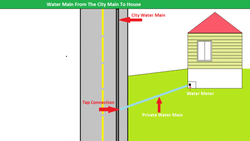 - If the tap connection which connects your water main to the city water main is undersized, was not installed properly or is broken, you will not have sufficient water reaching your house. Most homeowners assume it is the size of the pipe that controls the amount of water entering their home however, it is the tap connection that controls the volume and pressure of water from the city main to your water line.