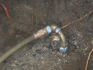 The owner decided to call a licensed and bonded plumber as DEP suggested. She called two companies, one which told her that the entire pipe had to be replaced and the other who had another idea. Because the pipe was considered new, Harris water suggested that we first perform an exploratory excavation at the curb valve. It was very possible that the leak could be repaired at the connection to the copper pipe; this would avoid any additional work while keeping cost to a minimum.