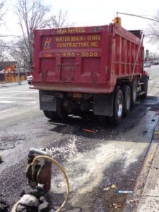 Because the existing water line was made of lead, it was required to replace the entire pipe with a new copper water line. It is no longer legal to repair any type of lead or galvanized pipe. Harris Water began digging the roadway the very next day and prepared to complete the new water line installation in one day.