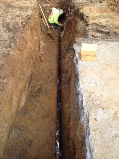 The property now had to be completely trenched for the new water line installation. Most of the trenching was located in a grass area which allowed for a quicker excavation process than if they were working in a concrete area, the team was on pace to complete the installation within the requested time frame.
