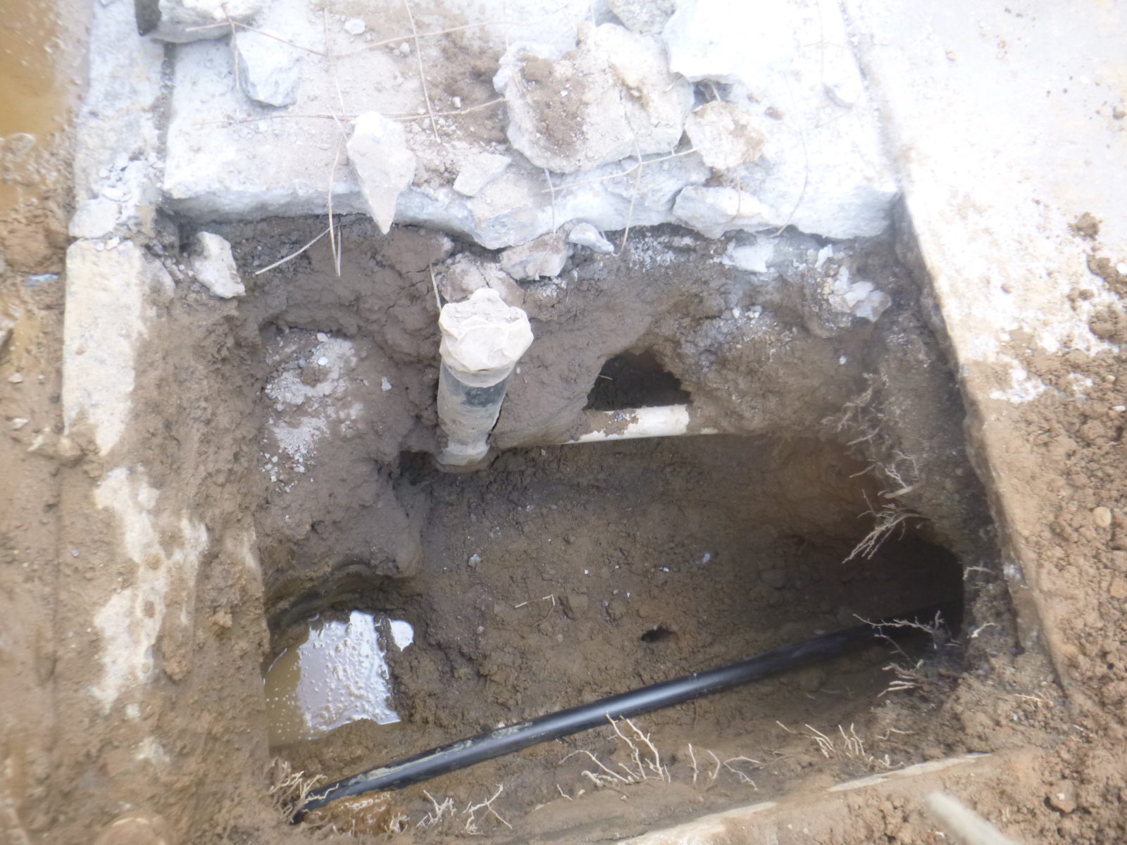 At this time we notified the homeowner of what was going on and suggested that we install copper pipe inside of a protective sleeve to avoid any future leaks. Once approved by the homeowner, we had the material on site and the new pipe was being installed to avoid any future issues with electrolysis.