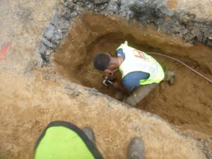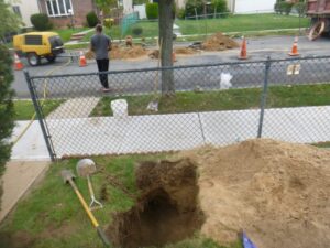 Once the water was turned off at the city main, the old pipe was disconnected and the field crew began making tunnels for the new copper pipe to be installed.