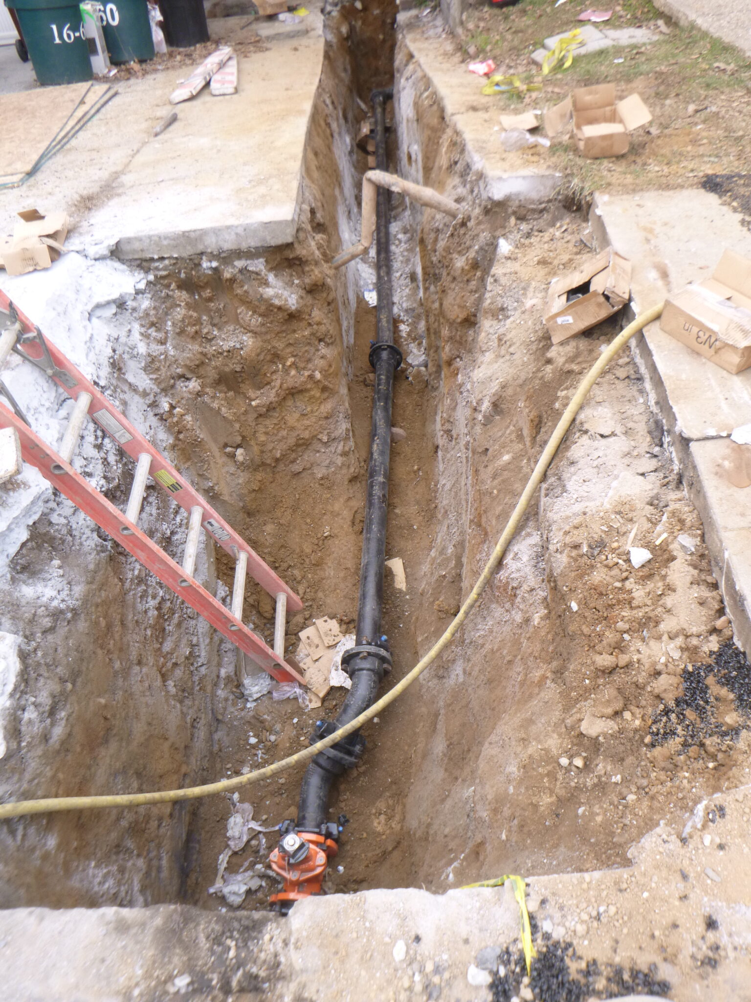Now that all of the piping was installed and the old domestic connection on the city main was plugged, the DEP inspected and passed the inspection on the new water main. The excavations were back filled and compacted before the final restoration of the roadway and sidewalk were completed.