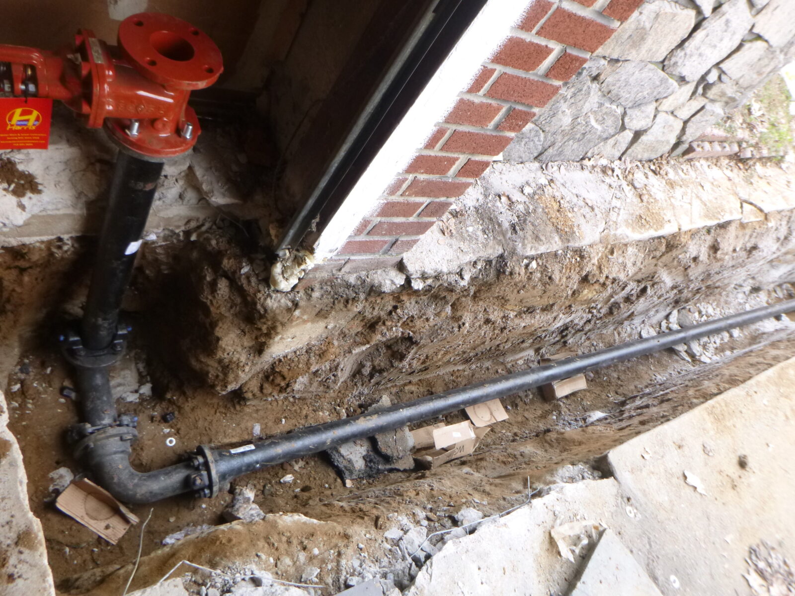 In this case the approval was for a 3″ combined water main, this includes both the sprinkler and domestic water in one pipe which will branch off on the inside of the house.