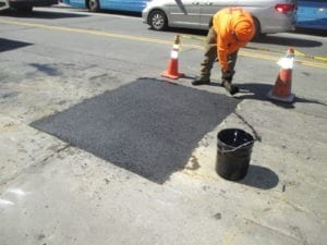 After the pipe is installed a separate crew will complete the final restoration of the roadway holes and any concrete that was disturbed through the point of installation.