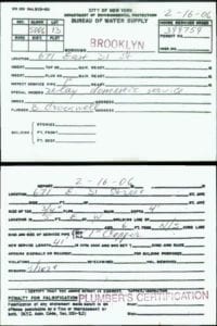 In NYC these records are known as “tapping records”. The name comes from the valve (tap) that connects the homeowner’s private water main to the city water main. Your Licensed Plumber can request this information from the DEP office as part of the standard protocol.