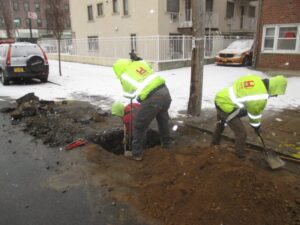 Once the water main and sewer contractor has all required DEP and DOT permits, they can begin opening the roadway for the new piping installation.