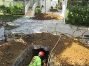 Once all of the tunnels are completed, the new copper water main will be pulled through all of the tunnels, connected to the city main and the existing internal piping in the house.