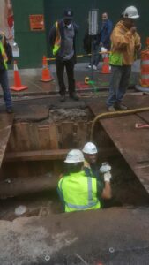 Harris Water began excavating in the roadway for a standard fire sprinkler main installation on Broadway, in Manhattan. The job was scheduled for one day to excavate in preparation for the DEP wet connection installation on the second day of work.