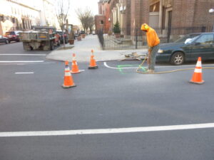 Harris Water Main & Sewer Contractors was on site the very next day and began by marking out the roadway for the excavation process.