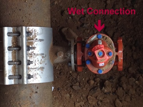 Example: A 3” ductile iron pipe would require a 3” wet connection to be connected to the city main.