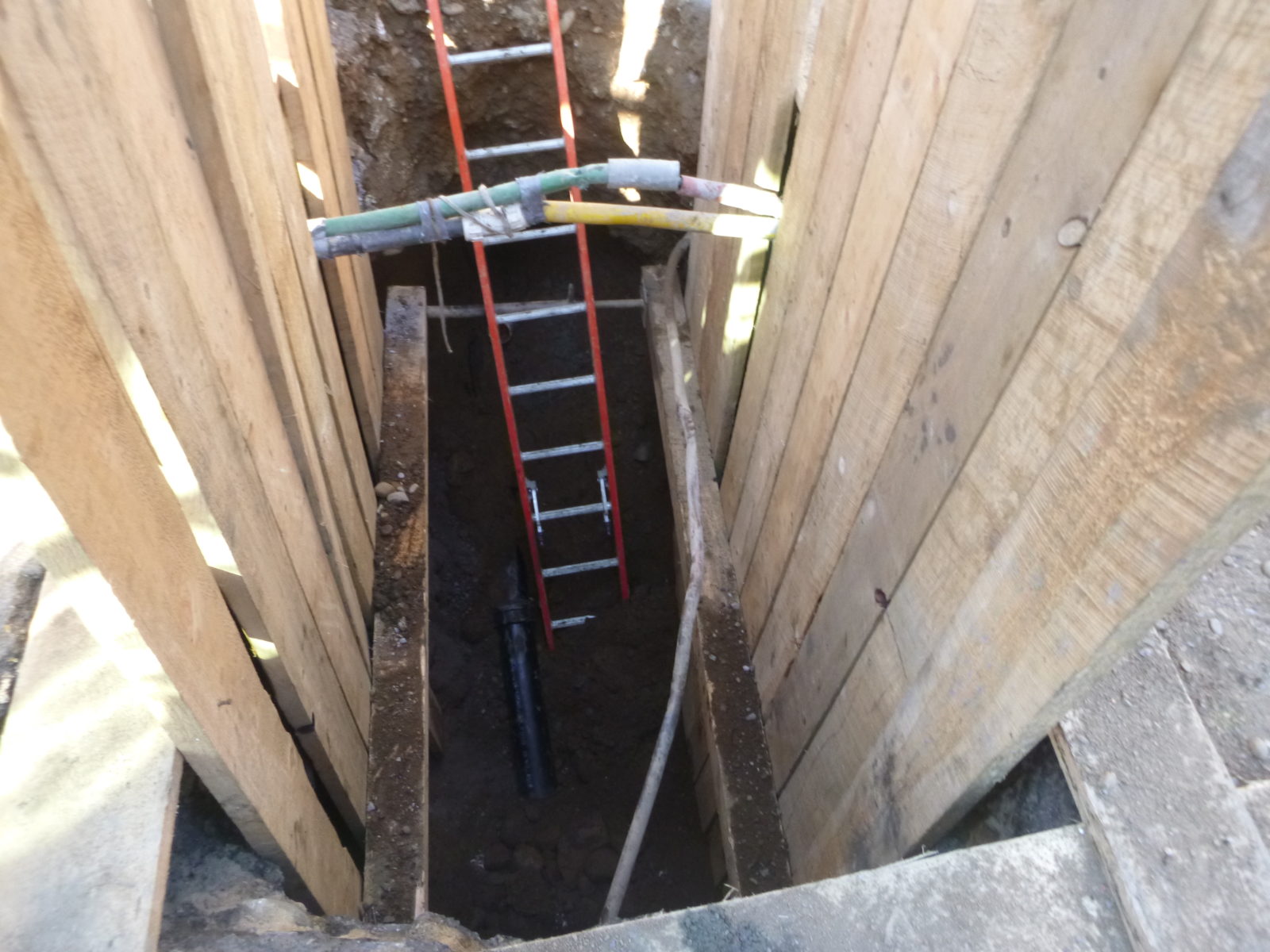 Finally after 4 hours of digging, we reached the existing sewer line which was 10’ deep.