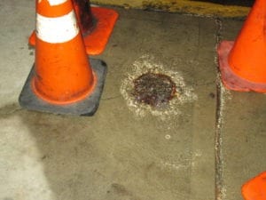 If you are experiencing a similar situation to either of these pictures, you, the property owner, are required to hire a licensed and bonded plumber to open the sidewalk or roadway and resolve the leak.