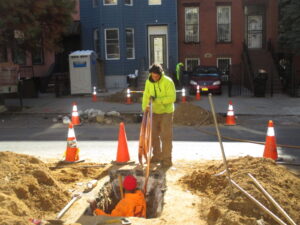 Most copper water main installations are completed in one day and require the contractor to excavate in the roadway, as well as the public sidewalk and property. It is important to understand that just because your leak is surfacing on the public sidewalk, it may not actually require the contractor to dig on the sidewalk.