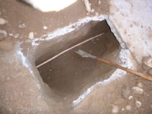 A water main repair usually requires less trenching than a sewer repair and will require tunnels to be made below ground. Once the tunnels are completed, the copper pipe is pulled from one hole, to the next.