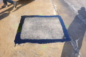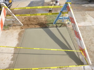 Our in house restoration crews will complete the restoration of the public sidewalk and roadway shortly after the installation is completed.