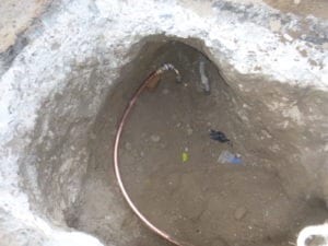 Now that the water leak was under control, the remainder of the work was completed quickly. Within 4 hours the new copper pipe was installed from the street, to inside the roadway tunnels, and inside the house.