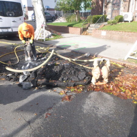 A property owner in East Flushing, Queens was made aware that their water main was leaking after receiving a DEP 3 day notice violation. The property owner was aware that water had been seeping out from under the roadway but really thought nothing of it, and assumed it was the responsibility of NYC to repair the leaking pipe.