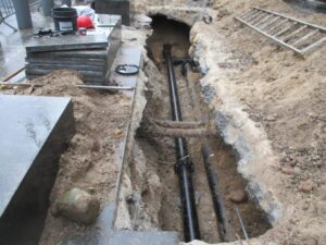 It was also very important for Harris to leave a 5’ walkway at the front of the building to avoid foot traffic at the main entrance of the building. This required Harris making an underground tunnel for the piping installation.