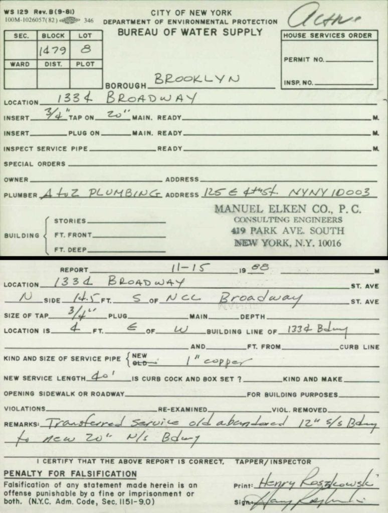 When performing sub-surface excavations in the city of New York, it’s always best to know what’s going on underground before you begin. The underground infrastructure of New York City is extremely complex. Luckily for us, the NYC DEP has kept a rather extensive and detailed catalog of records for many major updates and alterations that have been performed over the past century. Two of the most important records that we at Harris Water Main and Sewer use on a daily basis are referred to in the trade as, tap cards and spur maps.
