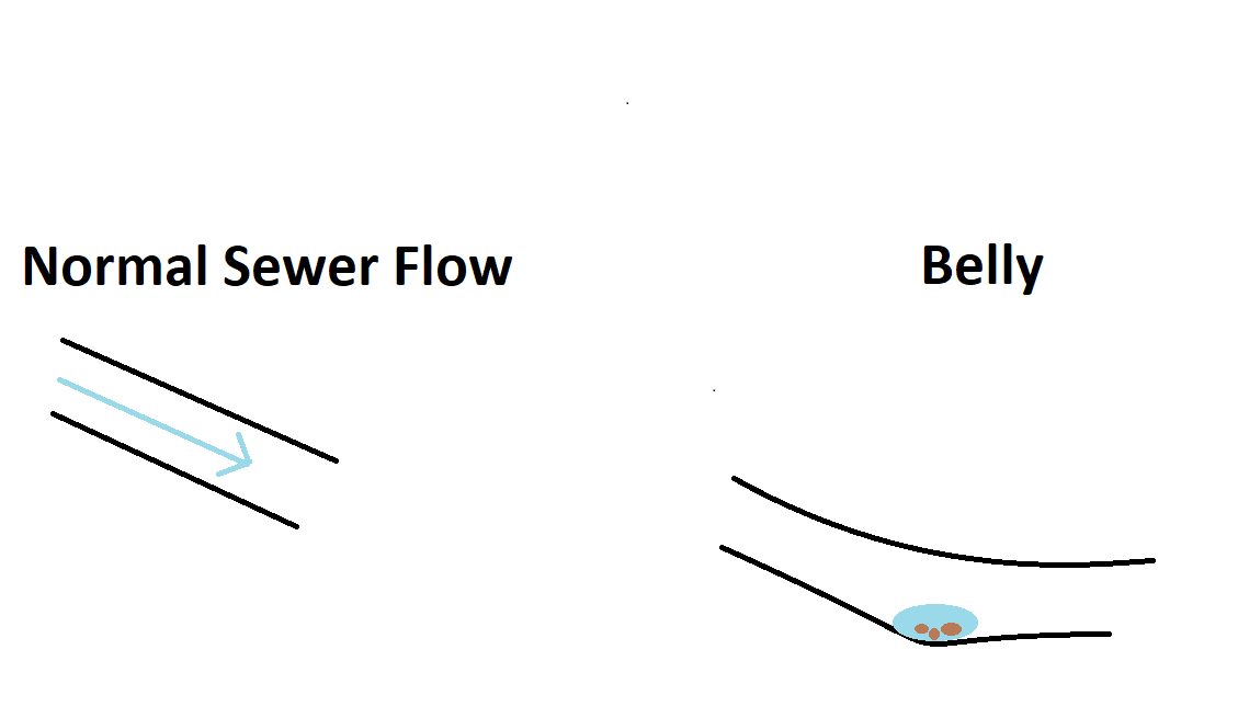 A sewer belly is a common occurrence when dealing with cast iron or clay sewer pipes. A belly in the sewer line is essentially a sag in your sewer pipe that allows sewage water to sit in the line and as a result sediment will restrict the normal sewage flow.